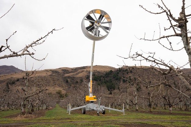 Several years ago, Theunissen Fruit was one of the first fruit growers in the area to invest in mobile wind machines from Frost Fans. Wouter Theunissen’s father made that decision based on a well-known principle: during frost nights, these machines pull warmer air down from higher layers in the atmosphere and mix it with the cold air near the ground, helping to protect the trees.