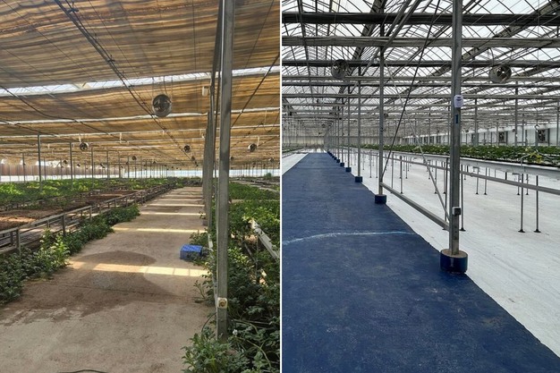 Greenhouse interior: left side is still in idle state, right side is after remodeling
