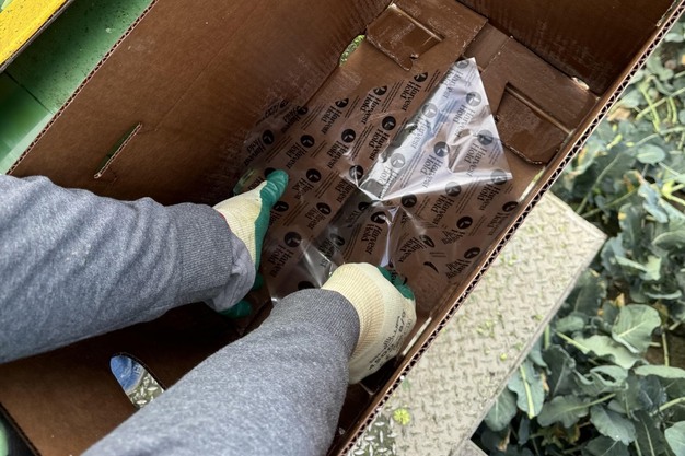 Their HarvestHold Fresh product is a humidity-activated, in-box sheet that slowly releases 1-Methylcyclopropene (1-MCP), rather than inundating produce all at once.
