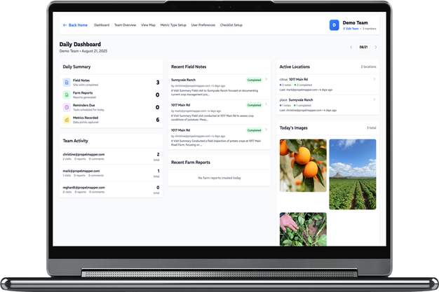 “PropelMapper’s approach is elegantly simple,” she explains. “After completing a farm visit or facility inspection, users record voice notes, describing what they observed, discussed, and planned. The platform’s artificial intelligence then transforms these recordings into structured, professional reports complete with visit summaries, follow-up items, metrics, charts, and photos.”