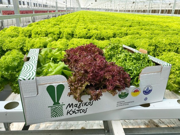 Hydroponic cultivation is not particularly widespread in Greece. However, at Magic Garden, a hydroponic greenhouse in Boeotia, this method has already reached a high level of specialization, as it now focuses exclusively on potted salad production. “Our unit began operating in 2020, and since 2022, we have focused solely on salad in pots. When stored in the refrigerator, it can offer fresh salad for up to three weeks. By the end of this year, our annual production will reach 9 million units. We cultivate a wide variety of salad types, and we even have pots with three different varieties: red lollo, green lollo, and oak leaf,” notes Mr. Kostas Filippakopoulos, General Manager of the greenhouse unit, which belongs to the company IGC.